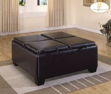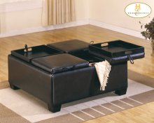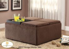 The Kaitlyn Collection. Functional cocktail table ottoman features storage and seating that reverses to reveal 4 individual serving trays. Brown Champion Fabric