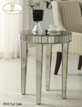The Lila Collection. The elegant modified hourglass shape of this table stands out in a crowd. vertical rods gather and descend to create the conical shape of this frosted glass topped accent table. The chrome finish adds a clean, modern look to the design.