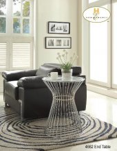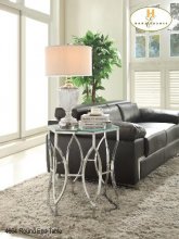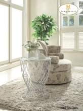 The Zara Collection. Woven metal rods intertwine to create an elegant nest that supports the frosted glass tabletop of this collection. An elegant chrome finish adds to the allure of this accent table.