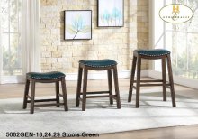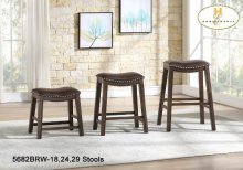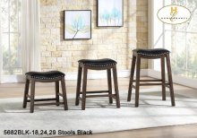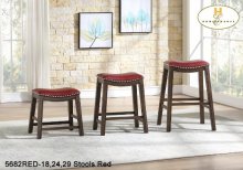 Counter-height Dining Collection featuring saddle stools accented by nail heads around the seat and in three different height 18, 24 or 29 inches. Offered in Black, Brown, Grey, Green and Red Leatherette.