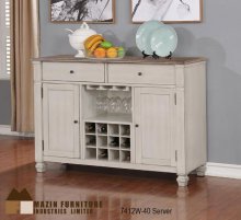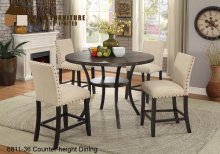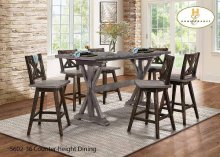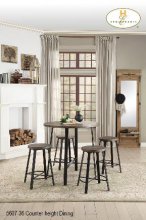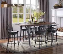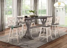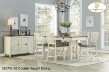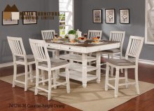 Country Chic Dining Collection featuring a counter-height or regular height dining tables, fabric seat chairs. Finished in a two-tone Antique White and Rosy Brown.
