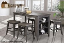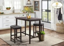The Tirel Collection. Scaled for the more modest of dining spaces, this collection features two accompanying stools that tuck neatly below the table top for quick and convenient storage. The rubberwood veneer features a dark brown finish that is perfectly accented by the dark brown bi-cast vinyl of barstool seats.