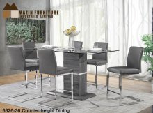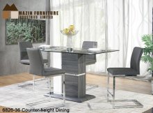 The Shirelle Collection. Counter-height Dining featuring a lacquer/wood and chrome base with a clear glass table top.
