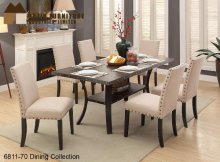 Country Chic Dining Collection featuring a counter-height or regular height dining tables, fabric seat chairs. Finished in a two-tone Antique White and Rosy Brown.