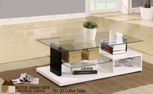 | Modern Coffee Table Collection in Black and White Glossy finish with clear glass tops |