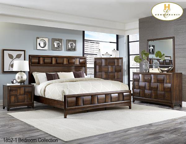| Contemporary Bedroom Collection featuring full extension drawer glides finished in warm walnut. |