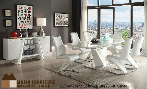 | 7387-86 | Sleek modern dining collection in white lacquer finish. |