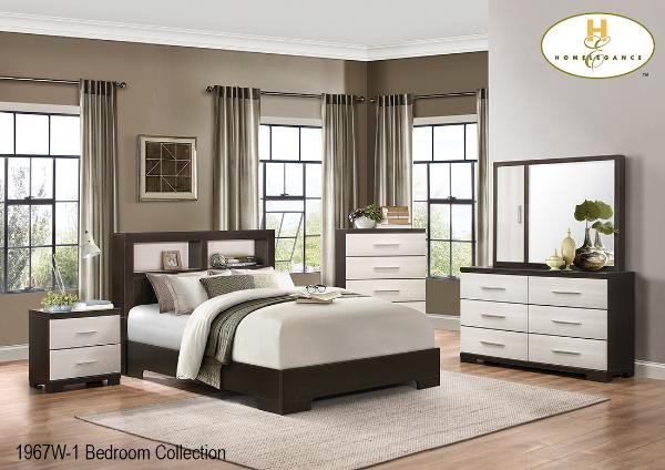 | The Pell Collection. Ultra-modern from the straight lines that defines the profile to the two-tone espresso and white finish, the Pell Collection is a stylish choice for your bedroom. Bold finish contrast is rather contrasted by nickel hardware for the ultimate in contemporary accenting. Elevating the functionality of the collection is the bookcase headboard and off-set storage mirror compartment. |