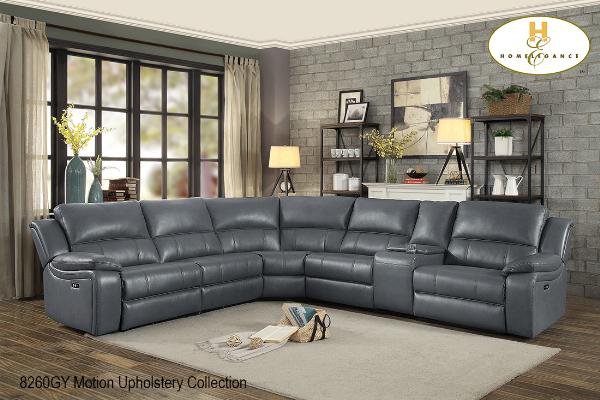| Power Motion 6pc Sectional in Grey Leather Gel-match |