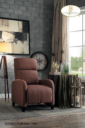 | 8268BR-1 | Push Back Recliner Brown Fabric | 27 x 36 x 43H |