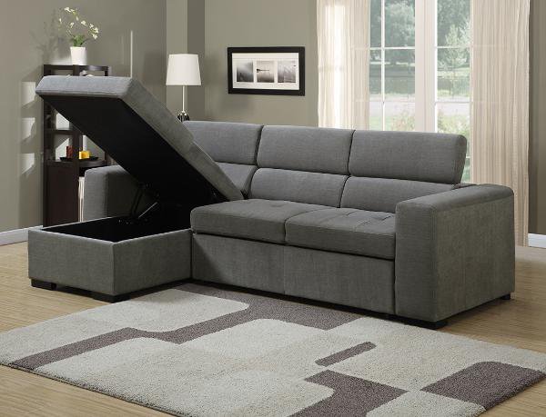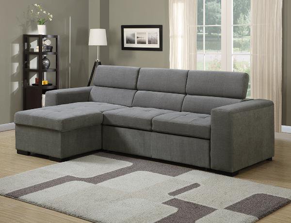 | The Primus Collection. Sectional with Pull-out Pop-up Bed in Grey Fabric. |