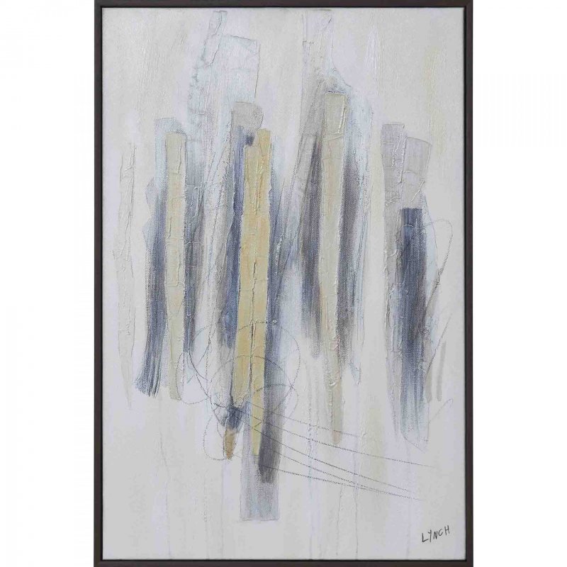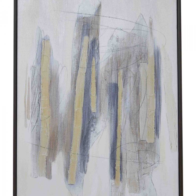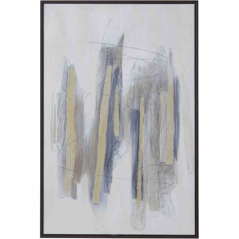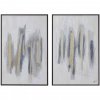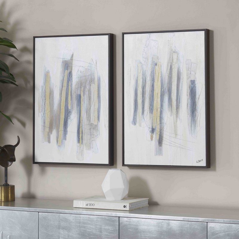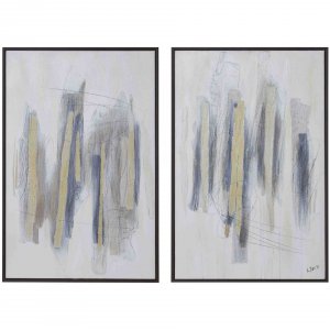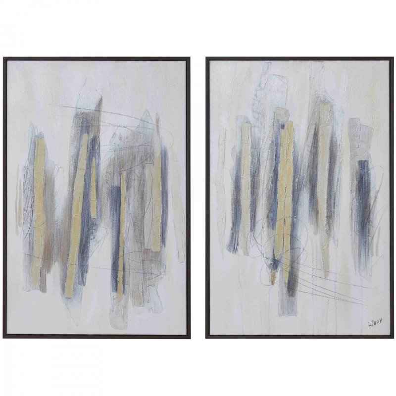 Set Of Two - Hand Painted - Canvas - Textured - Collage - Brown Frame