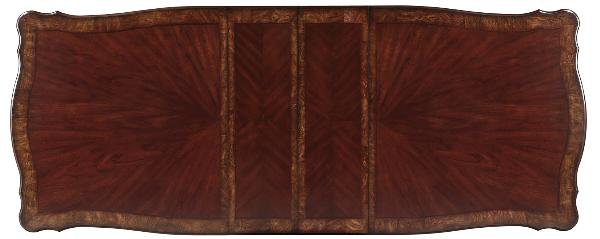 | The Deryn Park Collection. Walking into the dining room that is occupied by the Deryn Park Collection will immediately invoke your love of the traditional aesthetic. Stately from every angle, sophisticated design elements blend to create this beautiful collection. Burl inset flanks the book-match veneered cherry-finished tabletop. With two table options – the rectangular double pedestal base, and the oval topped single pedestal – the collection allows you the flexibility to fit the scale of your dining room. Each chair features an elaborately designed back and a richly hued fabric cover. The china and coordinating server provide ample display and storage space for your tabletop accessories. The cherry finish is highlighted by gold tipping that accentuates the traditional feel of elegant Deryn Park Collection. |