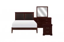Merging traditional and transitional design creates the look of the Seabright Collection, providing a unique platform from which to style your bedroom. The cherry painted finish allows for exceptional versatility of placement and decorative inspiration. The bed features framed, color-coordinated, dual faux leather padded headboard inserts and an ultra-low-profile footboard. The traditional styling of the satin nickel bale and pull hardware lends to the classic profile.