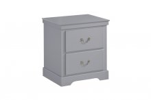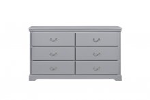 Merging traditional and transitional design creates the look of the Seabright Collection, providing a unique platform from which to style your bedroom. The gray painted finish allows for exceptional versatility of placement and decorative inspiration. The bed features framed, color-coordinated, dual faux leather padded headboard inserts and an ultra-low-profile footboard. The traditional styling of the satin nickel bale and pull hardware lends to the classic profile.
