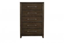 The contemporary styling of the Griggs Collection will be the perfect addition to your bedroom. The prominent ash veneer features a dark brown finish lending to the modern appearance. X-framing tops the headboard and understated lines of the panel bed. Fixed drawer pulls center each case piece further lending to the soft modern look.