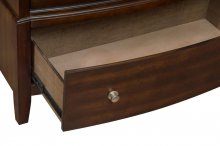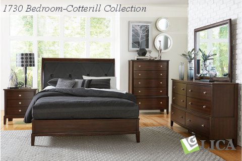With transitional styling that is at home in a number of decorative environments, the Cotterill Collection will be a versatile addition to your bedroom. Cherry finish over birch veneer, dramatically enhance the wood grain and is perfectly accented by the nickel hardware that punctuates each drawer front. Depending on your finish choice the headboard will feature either a black or gray faux leather insert with x-stitching and button-tufting.