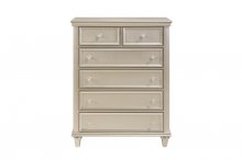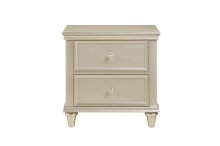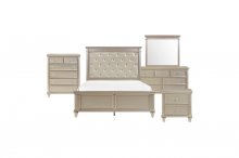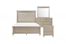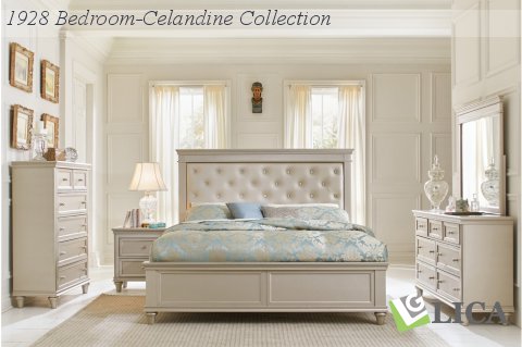 The look of traditional design is updated for the modern traditional home in the Celandine Collection. Crystal tufting immediately draws the eyes to the pearlized finish of the faux leather headboard insert, while high polished knob hardware stands out from the silver finish of the collection. With each of the aforementioned elements, subtle glamour will be achieved in the design of your elegant bedroom.