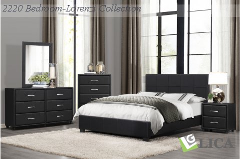 The contemporary design of the Lorenzi Collection is enhanced by the addition of the durable black faux leather covering that encases each piece in the collection. Silver tone hardware provides a distinct contrast to the fabric’s finish. Scaled for urban living, this collection will prove to be a unique and stylish addition to your master, youth, and guest bedrooms.