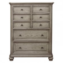 Transitional styling is paired with classic appointments and modern technology to create the Lavonia Collection. The eye-catching dramatic curved queen panel bed creates instant appeal when taking in the design. The framing of the headboard carries over to the design of the footboard. A gray wire-brushed finish over ash veneer furthers the classic look of this bedroom collection.