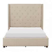 The stately profile of the Fairborn Collection will lend an air of understated elegance to your bedroom. The queen mansion headboard features nailhead accent and button tufting creating a modern traditional look that defines your personal style. Beige fabric covers the bed, providing neutral complement to your decorative bedding.