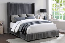 The stately profile of the Glenbury Collection will provide a dramatic statement to the design of your bedroom. The fully upholstered full size bed features pleated dark gray velvet covering and mansion shelter headboard, creating a modern traditional look that defines your personal style.