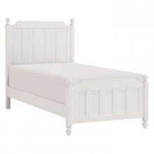 The modern farm house serves as inspiration for the design of the Wellsummer Collection. Offered in white finish for complete decorative versatility in your bedroom, this fresh look will satisfy your love of country styling. Ball finials top the Twin bed posts while turned feet provide support.