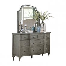 Refined elegance is exemplified in the design of the Albright Collection. Classic elements of understated traditional design combined with a barnwood gray finish over oak veneer and high polish knob hardware blend effortlessly to create a sophisticated modern traditional look for your bedroom. Elongated, tapered turned legs support the dresser.