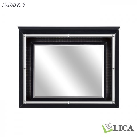 - Faux alligator embossed, textural drawer fronts with beveled mirror trim