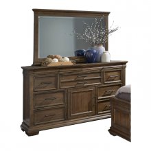 Classic transitional styling takes on a rustic aesthetic in the design of the Narcine Collection. The mirror frame is complemented by a weathered gray finish over oak veneers.