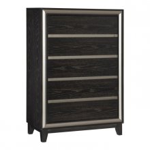 The Grant Collection features a streamlined profile and visual complementing contrast, with the resulting design being a perfect fit for your modern home. An ebony finish is utilized over oak veneer, highlighting the distinct grain, with silver finished banding defining the front of the chest. Hidden, under-drawer finger pulls further the minimalistic look of the piece.