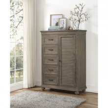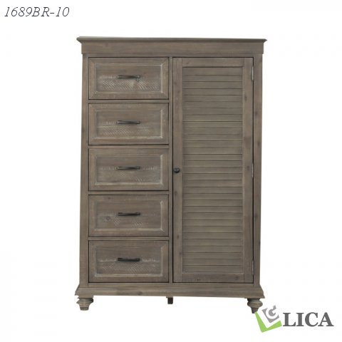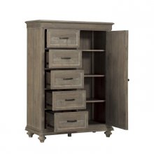 The solid transitional styling of the Cardano Collection creates an impactful design presence in your home. Utilizing distinct accent techniques – plank effect, rasping, saw marks – and pairing them with traditional framing and a light finish – brown wood over acacia veneers – creates wardrobe chest that is a perfect fit for your bedroom. Pewter finished hardware provides a subtle contrast to the wood’s light finish. The drawers and door of the wardrobe chest open to reveal ample space for your personal items.