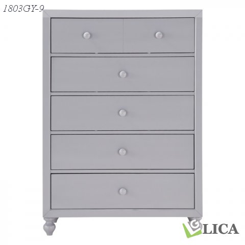 The modern farm house serves as inspiration for the design of the Wellsummer Collection. Offered in white or gray finish for complete decorative versatility in your bedroom, this fresh look will satisfy your love of country styling. Turned feet provide support to all pieces in the collection. Wood knob hardware centers the drawer fronts solidifying the trend forward transitional look.