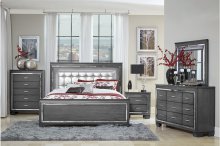 Glamour reigns in the design of the Allura Collection. Framing chest is a decorative beveled mirror accent. The alligator embossing of the drawer fronts is paired with high-polished crystal-enhanced hardware that boldly decorates the silver finish.