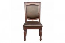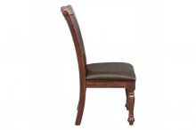 Elegantly designed for the traditional dining room is the Lordsburg Collection. Supported by the pedestal base is the table’s round top where the magnificent parquet veneer is highlighted by the brown cherry finish that covers the collection. Heavily carved molding provides distinct accent to the table’s top while brown faux leather covers the seats and backs of the coordinating wood-framed chairs.