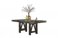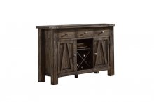 Rustic industrial styling heavily influences the design of the Mattawa Collection. Metal banded rivet accenting provides visual contrast to the chairs, table and server of this casual dining collection. The brown finish has hints of gray undertone lending to the rustic look. Accompanying the collection is the server, featuring drawers and behind door storage.