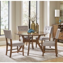 The classic elements of mid-century modern design are harnessed to create the look of the Edam Collection. The classic style of this casual dining table features a modified X-base and subtly tapered round tabletop.