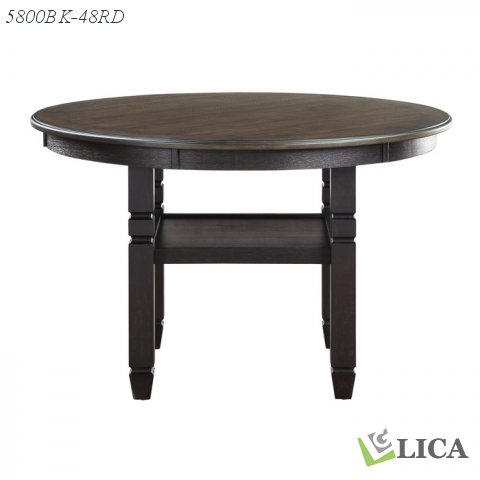 The transitional style of the Asher Collection creates a versatile platform to inspire your casual dining room décor. The round dining height table’s support base features a display shelf that allows for quick and open access to your tabletop accessories. The antique black finish over acacia veneer serves to highlight the wood’s grain while allowing for maximum versatility in decorative accenting.
