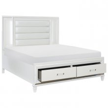 Designed to help your bedroom reach its full glamorous potential, the Tamsin Collection’s unique attributes blend to create a stylish and functional addition to your lifestyle. Mirrored framing provides dramatic enhancement to the Eastern King bed, while LED back-lighting, from the vertical headboard panels, illuminates and highlights the embossed white finish of the collection. Acrylic bar hardware provides unobtrusive decorative touch to the drawer fronts of the storage footboard, with the metallic silver faux leather-covered padded headboard insert lending decorative contrast to the finish of the collection.