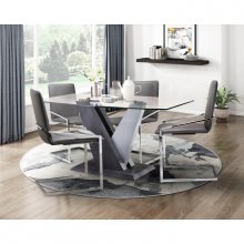 The sleek contemporary styling of the Jasmine Chair will bring modern elegance to your dining space. The continuous chrome base wraps around the back of the chair creating a unique visual interest as well as arm support. Easy to clean PU fabric has a subtle pebbling effect, available in grey, white or black. So create rich simplicity in your home with the Jasmine Chair