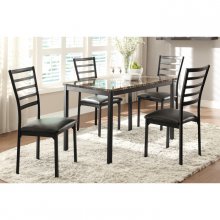 With a scale appropriate for any number of smaller dining spaces, the Flannery Collection will provide the look and style you want in your home. The transitional feel of the ladder-back chair comes from the contrast of the black finish of the frame and the black faux leather seat.