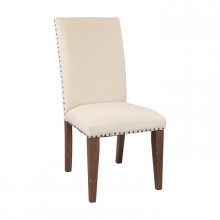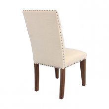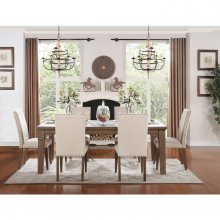 With traditional touches that blend elegantly with the casual look of the Mill Valley Collection, your dining room will be a warm and inviting space to share meals with your friends and family. The weathered wash finish has hints of gray and white alluding to a rusticated lifestyle. Neutral tone padded fabric chairs feature nailhead accent and wood leg support.