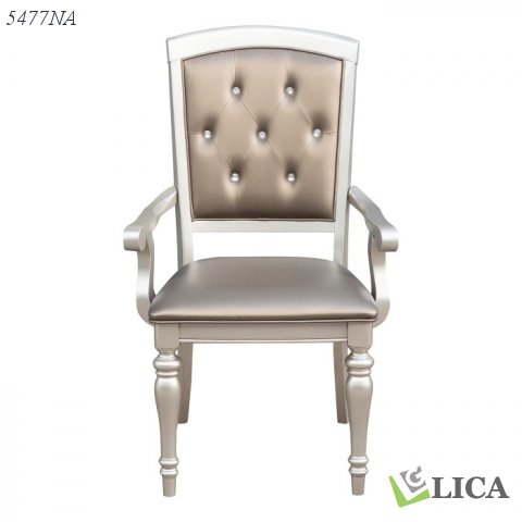 Casting a glamorous reflection of your personal style, the Orsina Collection will dazzle your friends and family as they enter the sophisticated dining space you have created. The pearl faux leather of the chairs lends elegant contrast. Crystal button tufting lends additional sparkle.