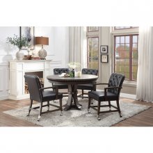 Gathering your friends and family for a friendly game will be easier with the addition of the Ante Collection. Decorative elements of the armchair include nailhead accent, faux leather covered seat with button tufted backs, and casters for ease of movement.