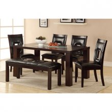 Completely modern in all aspects, the Lee Collection enhances your dining room with clean lines and unique design elements. The 49-inch bench is upholstered with dark brown bi-cast vinyl which complements the espresso finish of the wood veneer.