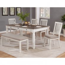 French Country warmth meets supreme functionality with the two-tone Nesbitt Dining Bench. This armless and backless bench features charming moulding details on the solid wooden frame, which is crowned by an upholstered seat with padded comfort to increase your dining enjoyment. The antique white frame is contrasted with taupe-beige fabric to create visual interest with the adaptability that comes from having a neutral, versatile palette. The inherent charm of this classic country look is key to creating an inviting atmosphere in your transitional dining room.