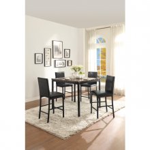 With a scale appropriate for any number of smaller dining spaces, the Tempe Collection will provide the look and style you want in your home. The transitional feel of the counter height chair comes from the black metal legs and the brown faux leather seat.