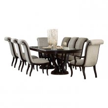 Sophisticated soft contemporary design is achieved in your dining room with the addition of the Savion Collection. An espresso finish highlights the unique veneer pattern. Reeded fronts on the server along with the serpentine profile further the elegance.