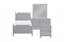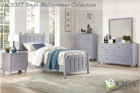 The modern farm house serves as inspiration for the design of the Wellsummer Collection. Gray finish for complete decorative versatility in your bedroom, this fresh look will satisfy your love of country styling. Ball finials top the bed posts while turned feet provide support to all pieces in the collection. Wood knob hardware centers the drawer fronts solidifying the trend forward transitional look.