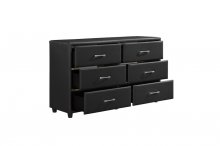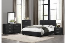 The contemporary design of the Lorenzi Collection is enhanced by the addition of the durable black faux leather covering that encases each piece in the collection. Silver tone hardware provides a distinct contrast to the finish of cover. Scaled for urban living, this collection will provide a unique and stylish addition to your master, youth, and guest bedrooms.